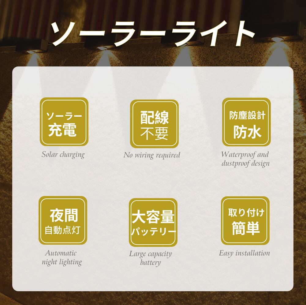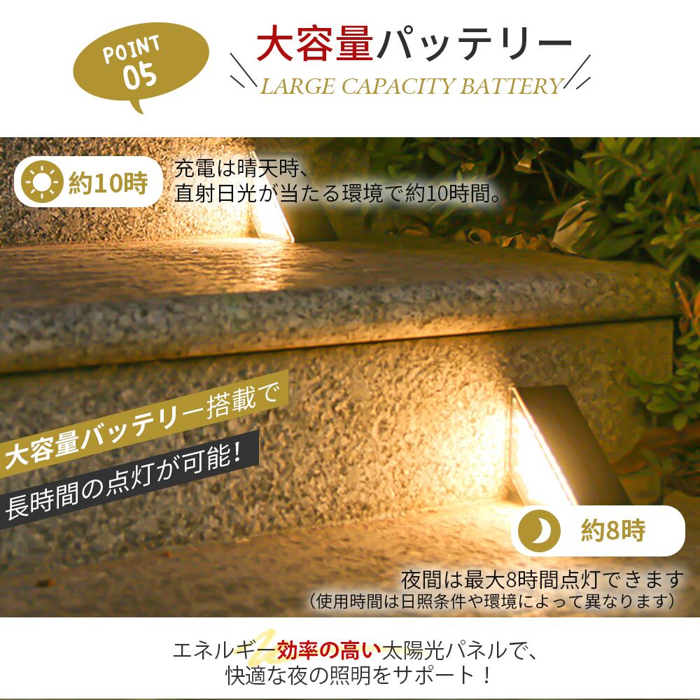 防水仕様なので、雨や雪の日でも安心して使えます。特に冬場や曇りの日でも、弱い日差しでしっかり充電ができるため、長期間にわたって使用可能です。階段や廊下、足元を照らすにも最適で、安全性を高める役割も果たします。
