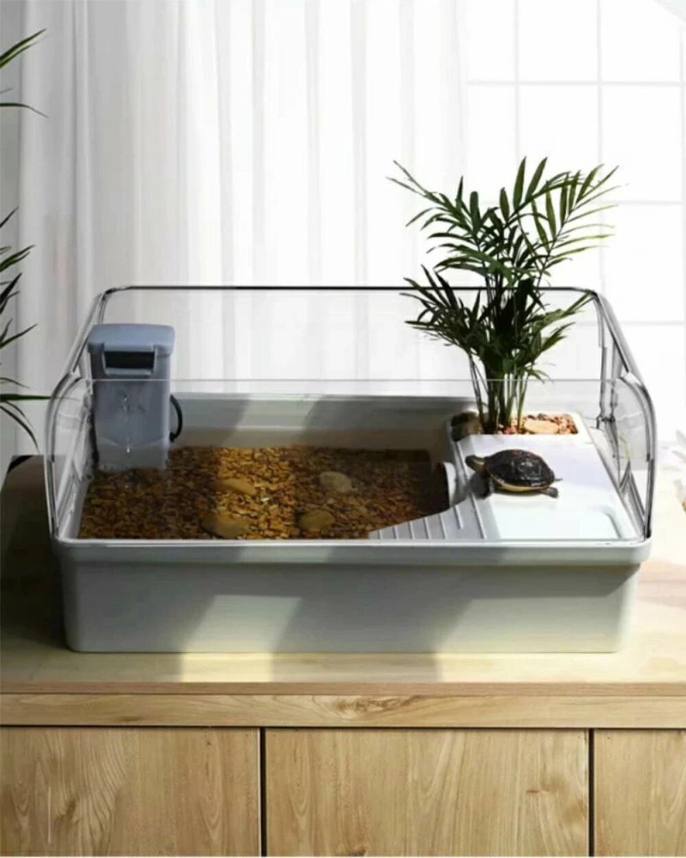【快適な飼育環境】広々とした空間で、カメにより自然で快適な生活環境を提供。健康維持や観察にも最適です。