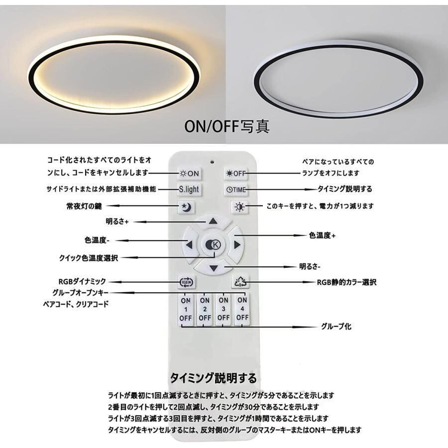 製品は無段階調光&調色機能を搭載し、気分や季節によって、部屋の光量や背景色を一変!全方位制御できる便利なリモコンが付きます。「明るい」あるいは「暗い」ボタンを押すごとに、ワンランクで明るさを調節できます。2秒以上長押すと、無段階連続調光できます。更に常夜灯機能を搭載し、リモコンにある「常夜灯」ボタンをおすと、ライトの明るさは最もくらくなる、やく1wの消費電力相当、ほぼ損なし。常夜灯は夜間授乳や病人の看護に最適です。3%の明るさで照明してくれて、目に優しくて節電です。年取ってから、脚が悪くなる高齢者達にとって、常夜灯モードにすると、夜起き時に、怪我予防にも役たちになる。