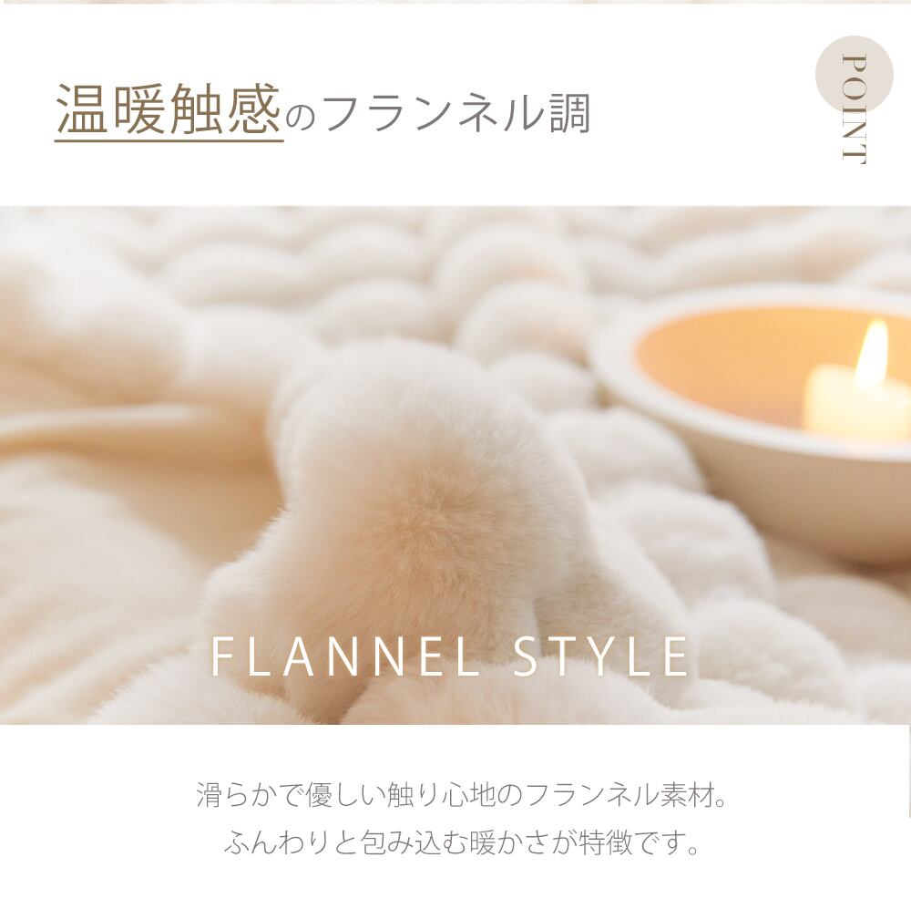 軽量ながらも高密度な素材感で、しっかりとしたボリュームを実現。フランネル調の滑らかさと優しい触り心地が特徴で、快適な使い心地を保証します。